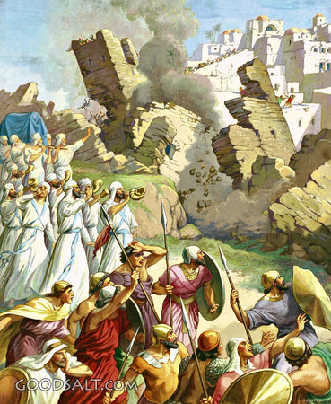 Fall of Jericho Joshua 6 salvation, history, march, conquest, prophecy, seven, sin, joshua, discipleship, israel, jericho, army, commandments, priests, trumpets, walls PROJECTION - License for PowerPoint™ PRINT – buy a print of this picture; optional frame Bible Hub |
