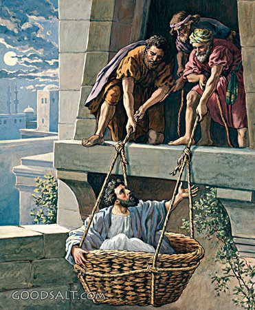 Paul Let Down in a Basket Acts 9:23-25 2 Corinthians 11:32 history, kill, saul, king, wall, escape, paul, sin, basket, damascus, love, Jews, conspiracy, Aretas PROJECTION - License for PowerPoint™ PRINT – buy a print of this picture; optional frame Bible Hub |