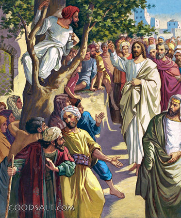 Zaccheus in the Tree Luke 19:1-27 salvation, Jesus, history, short, tree, publican, sinner, prophecy, sin, discipleship, guest, collector, tax, zacchaeus, Zaccheus PROJECTION - License for PowerPoint™ PRINT – buy a print of this picture; optional frame Bible Hub |