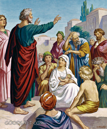 Peter's Sermon at Pentecost Acts 2:14-41 witnessing, messiah, salvation, baptize, god, Jesus, saved, spirit, peter, faith, holy, pentecost, prophecy, sermon, discipleship, forgiveness, love, commandments PROJECTION - License for PowerPoint™ PRINT – buy a print of this picture; optional frame Bible Hub |