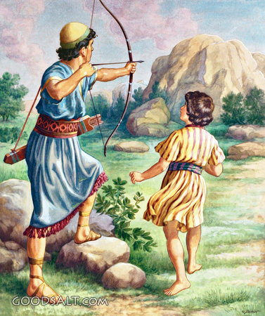 warning, saul, king, prophecy, friendship, david, covenant, arrow, bow, jonathan, wept, love