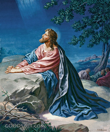 Christ in Gethsemane Matthew 26:36-46 Mark 14:32-42 Luke 22:39-46 salvation, will, god, Jesus, history, pray, john, blood, peter, faith, prophecy, gethsemane, garden, discipleship, sweat, james, cup, easter, art, love, images, passion week, Pictures, pics PROJECTION - License for PowerPoint™ PRINT – buy a print of this picture; optional frame Bible Hub |
