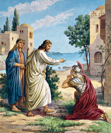 Christ and the Centurion Matthew 8:5-13 Luke 7:1-10 salvation, Jesus, paralyzed, healing, history, hour, faith, centurion, sin, authority, command, servant, palsy, Capernaum PROJECTION - License for PowerPoint™ PRINT – buy a print of this picture; optional frame Bible Hub |