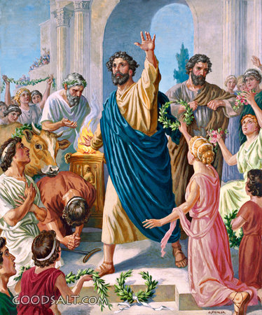 healing, jupiter, faith, paul, lame, sacrifice, barnabas, love, Lystra, Zeus, Mercury, Hermosa
