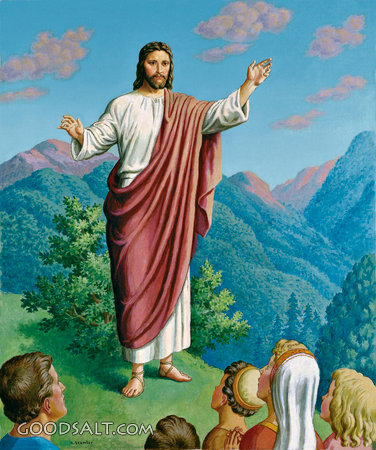 Jesus Preaching From Mountain Matthew 5 Matthew 6 Matthew 7 witnessing, salvation, god, Jesus, mountain, heaven, faith, kingdom, multitude, prophecy, blessed, sermon, sin, discipleship, family, mount, love, commandments, disciples, crowds PROJECTION - License for PowerPoint™ PRINT – buy a print of this picture; optional frame Bible Hub |