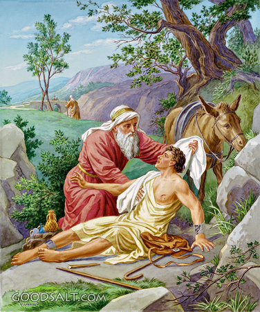 Good Samaritan Luke 10:25-37 salvation, Jesus, parable, samaritan, levite, history, priest, thieves, eternal, neighbor, jericho, love, commandments, robbers PROJECTION - License for PowerPoint™ PRINT – buy a print of this picture; optional frame Bible Hub |