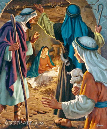 Shepherds Arriving at Stable Luke 2:15-20 angel, witnessing, messiah, nativity, Jesus, birth, baby, joseph, mary, manger, prophecy, discipleship, bethlehem, christmas, shepherds PROJECTION - License for PowerPoint™ PRINT – buy a print of this picture; optional frame Bible Hub |