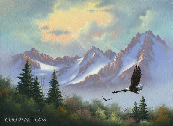 flying, cloudy, bird, wood, animal, mountain, cloud, tree, eagle, forest