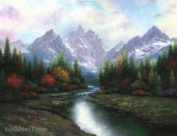 flow, flowing, cloudy, sky, mountain, cloud, river, tree, creek, stream, forest