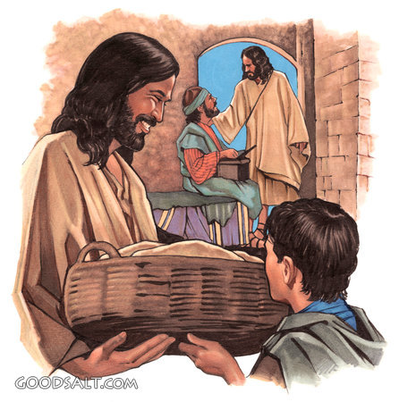 Matthew 14:16-21 Matthew 14:16-21 Mark 6:37-44 Luke 9:13-17 happiness, joyful, joyous, lord, master, messiah, people, joy, christ, Jesus, emmanuel, immanuel, child, boy, man, men, kid, food, person, house, bread, sharing, savior, share, male, offering, children, love PROJECTION - License for PowerPoint™ PRINT – buy a print of this picture; optional frame Bible Hub |