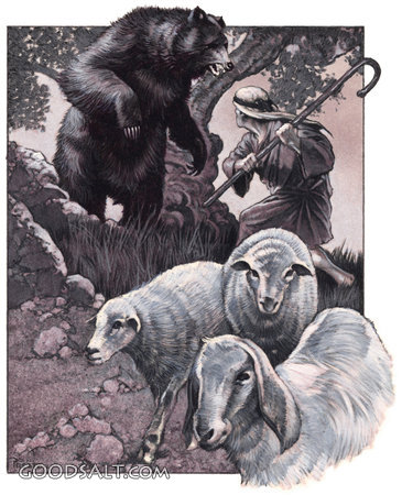 1 Samuel 17:34-36 1 Samuel 17:34-36 guarding, animal, goat, shepherd, field, lamb, sheep, protecting, tree, bear, savior, protect, david, flock, herd, guard PROJECTION - License for PowerPoint™ PRINT – buy a print of this picture; optional frame Bible Hub |