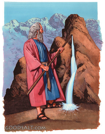 Exodus 17:3-7 Exodus 17:3-7 desert, water, striking, miracle, pouring, pour, hit, hitting, strike, gush, rock, man, staff, prophet, stream, male, moses, horeb, meribah, gushed PROJECTION - License for PowerPoint™ PRINT – buy a print of this picture; optional frame Bible Hub |