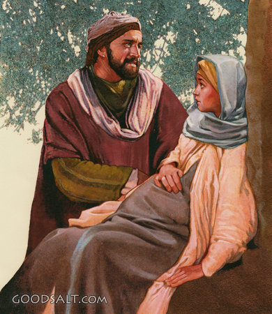 Joseph and Mary Matthew 1:20-25 travel, talk, talking, pregnant, travelling, traveller, woman, child, man, loving, joseph, mary, tree, smile, smiling, family, wife, husband, male, sitting, sit, bethlehem, love PROJECTION - License for PowerPoint™ PRINT – buy a print of this picture; optional frame Bible Hub |