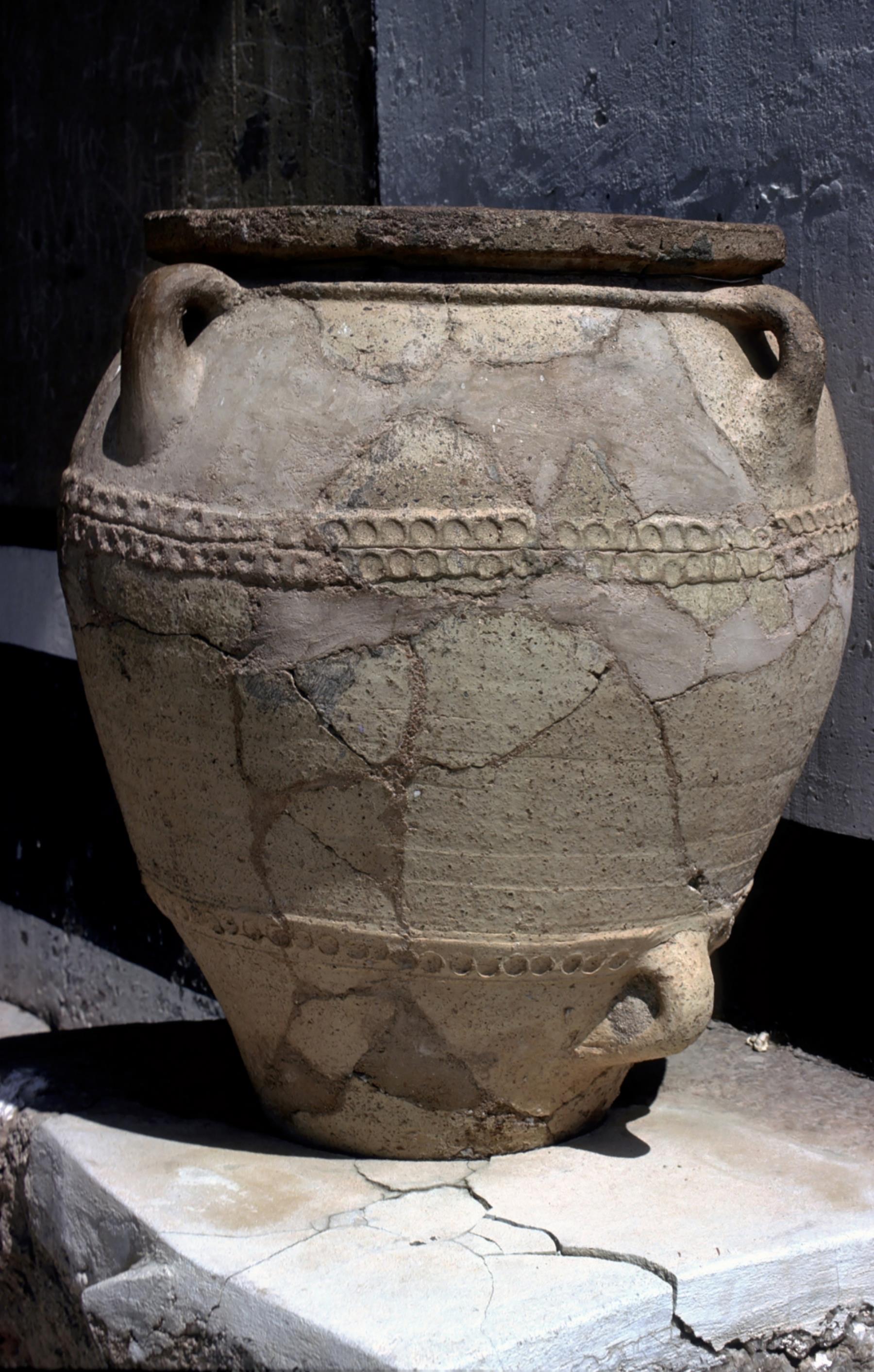 Earthen jar. Earthen jar. Sometimes known as Candia, Bible-time Crete is a large island in the Mediterranean Sea, about 150 miles long and 50 miles wide. The ship carrying Paul to Rome passed along the southern coast of Crete, where it encountered a storm (Acts 27:7-11). People of Crete were among those at Pentecost (Acts 2:11). Between Paul's first and second imprisonments, he and Titus visited Crete (Titus 1:5). Tradition says that Titus was bishop of Crete and that he died there in his old age. In one ancient writing, Titus is called Bishop of Gortyna. Paul's letter to Titus talks about the conditions on Crete. A scene at Knossos, a Minoan captial with a vast palace ruins. Large jar or pot. crete; titus; paul; bishop; candia; island; mediterranean sea; acts 2:11; acts 27:7-11; titus 1:5; knossos; palace; monoan; capital; ruin; remains; archaeology; antiquity; artifacts; jar; pot; bishops; islands; palaces; capitals; ruins; jars; pots |