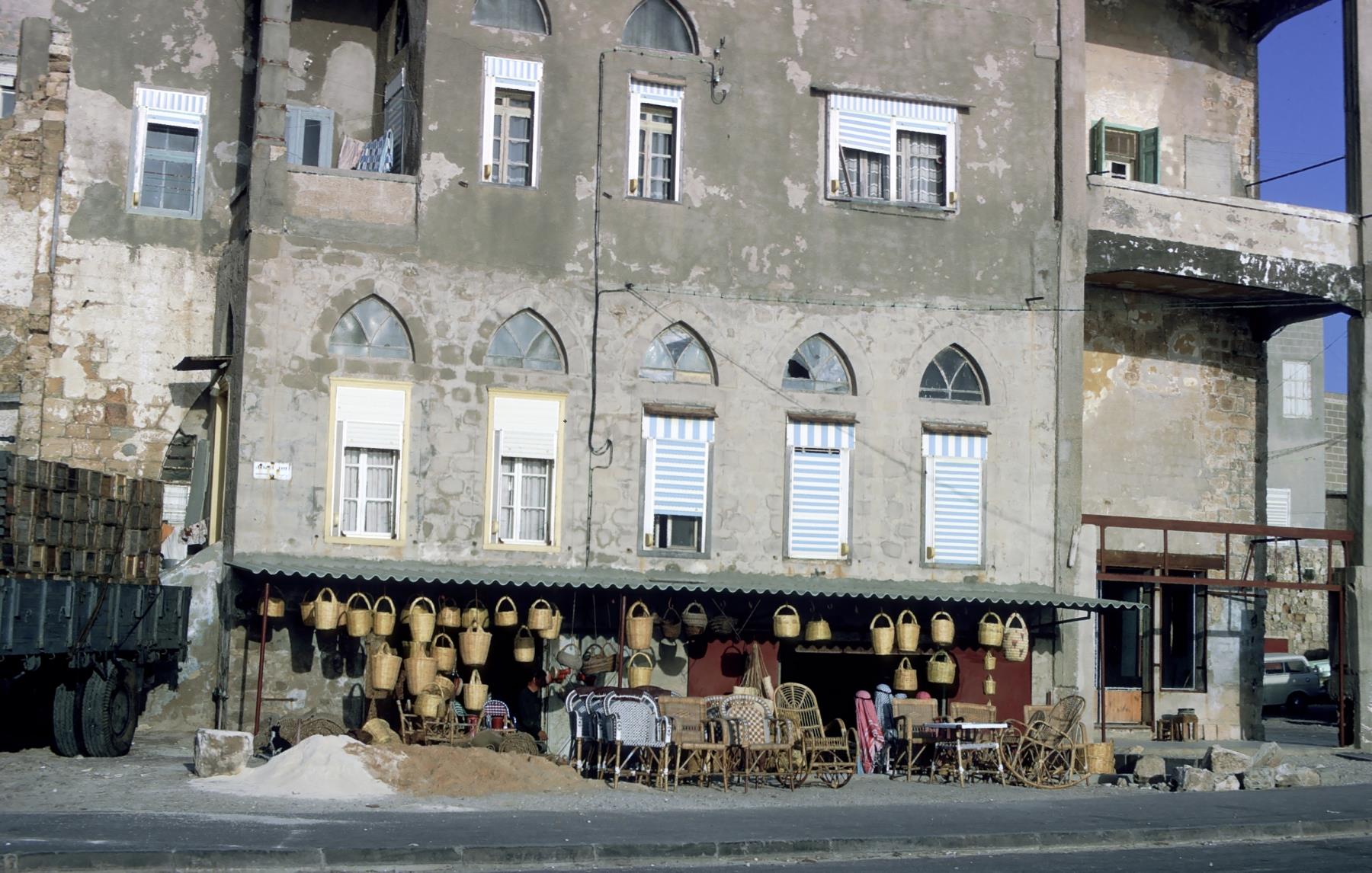 Basket shop at Acre or Accho Basket shop at Acre or Accho, a seaport eight miles north of Mount Carmel. Acre is the English name. In New Testament times it was known as Ptolemais. Paul stayed here a day with friends (Acts 21:7). Today the modern city of Haifa is nearby. israel; acre; accho; ptolemais; paul; acts 21:7; harbor; seaport; basket shop; harbors; seaports |