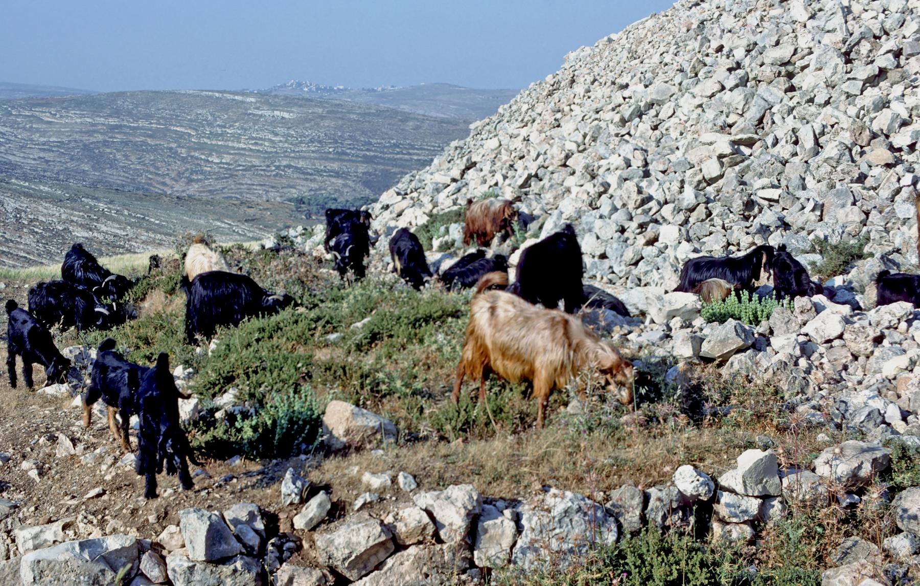 Ai Ai, in Israel, is east of Bethel. Abraham pitched his tent between Ai and Bethel when he arrived in Canaan (Genesis 12:8). Ai was the second Canaanite city conquered by the Israelites when they entered the Promised Land. At first they lost because of Achan's sin, then won (Joshua 7--8). Et Tell is the ruins of Ai. Other Scriptures related to Ai -- 1 Chronicles 7:28, Isaiah 10:28. Ai is called Aiath in the Revised Standard Version. Goats graze among the ruins of Ai. israel; ai; aiath; et tell; genesis 12:8; abraham; joshua; canaanite; israelites; conquest; achan; joshua 7--8; 1 chronicles 7:28; isaiah 10:28; archaeology; antiquity; ruin; remains; artifacts; goat; conquests; ruins; goats |