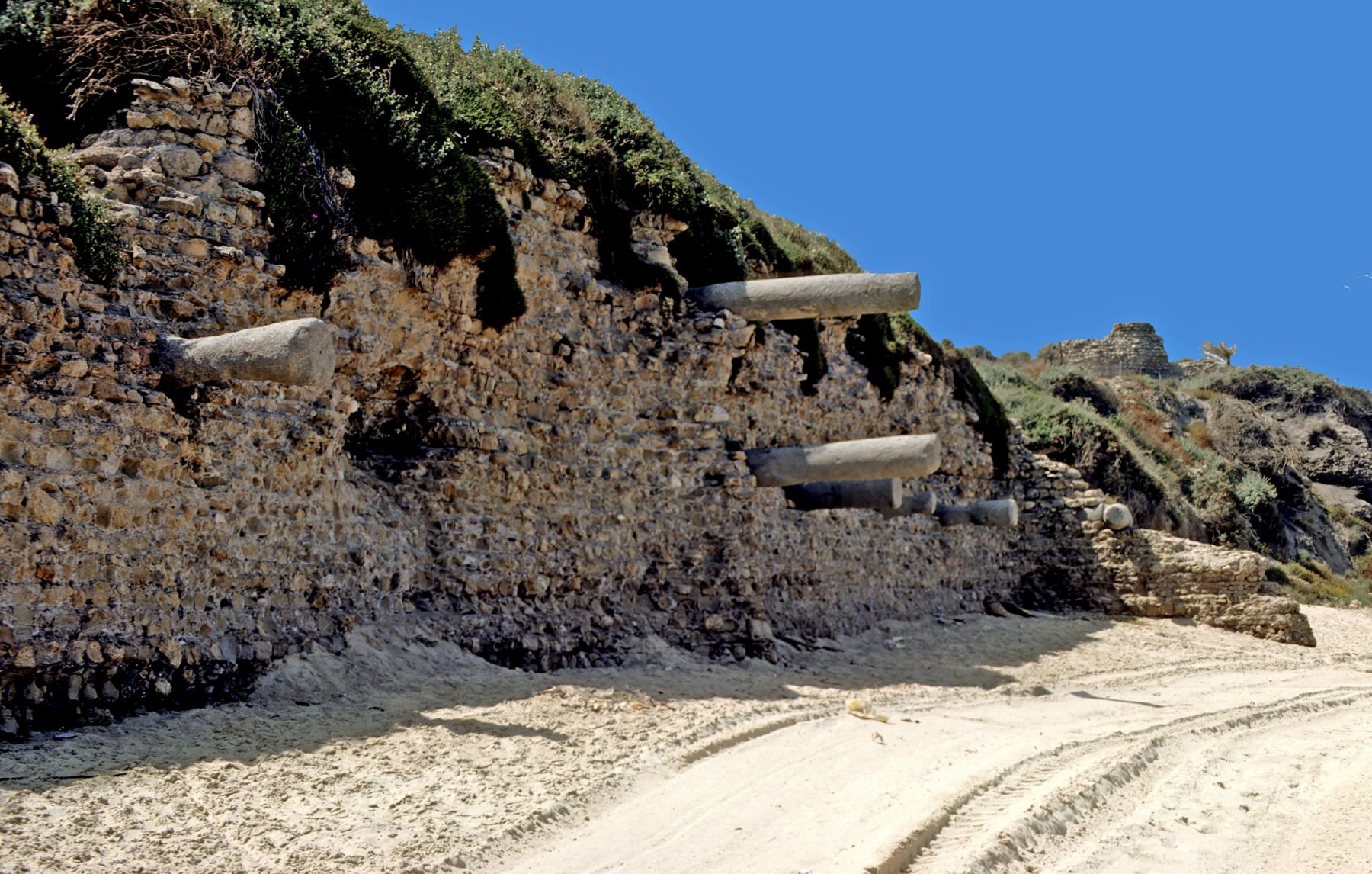 Israel Before the conquest of the Promised Land, Ashkelon (Askelon or Ascalon) was a Canaanite city. The tribe of Judah conquered Ashkelon shortly after the death of Joshua (Judges 1:18), but then lost it to the Philistines. It became one of the five key Philistine cities. The other four were Gaza, Gath, Ashdod, and Ekron. It is mentioned in Samson's time as a Philistine city (Judges 14:19). David mentions Ashkelon when he lamented Saul's death (2 Samuel 1:20). Two prophets foretold its destruction (Zephaniah 2:4 and Zechariah 9:5). Ashkelon was the birthplace of Herod the Great and the residence of his sister Salome. Excavations at Ashkelon have revealed many period of history. Columns, likely from Roman or Greek times. israel; ashkelon; askelon; ascalon; canaanite; philistines; judges 1:18; judges 14:19; 2 samuel 1:20; zephaniah 2:4; zechariah 9:5; archaeology; artifacts; antiquity; ruin; remains; column; roman; greek; ruins; columns; romans; greeks |