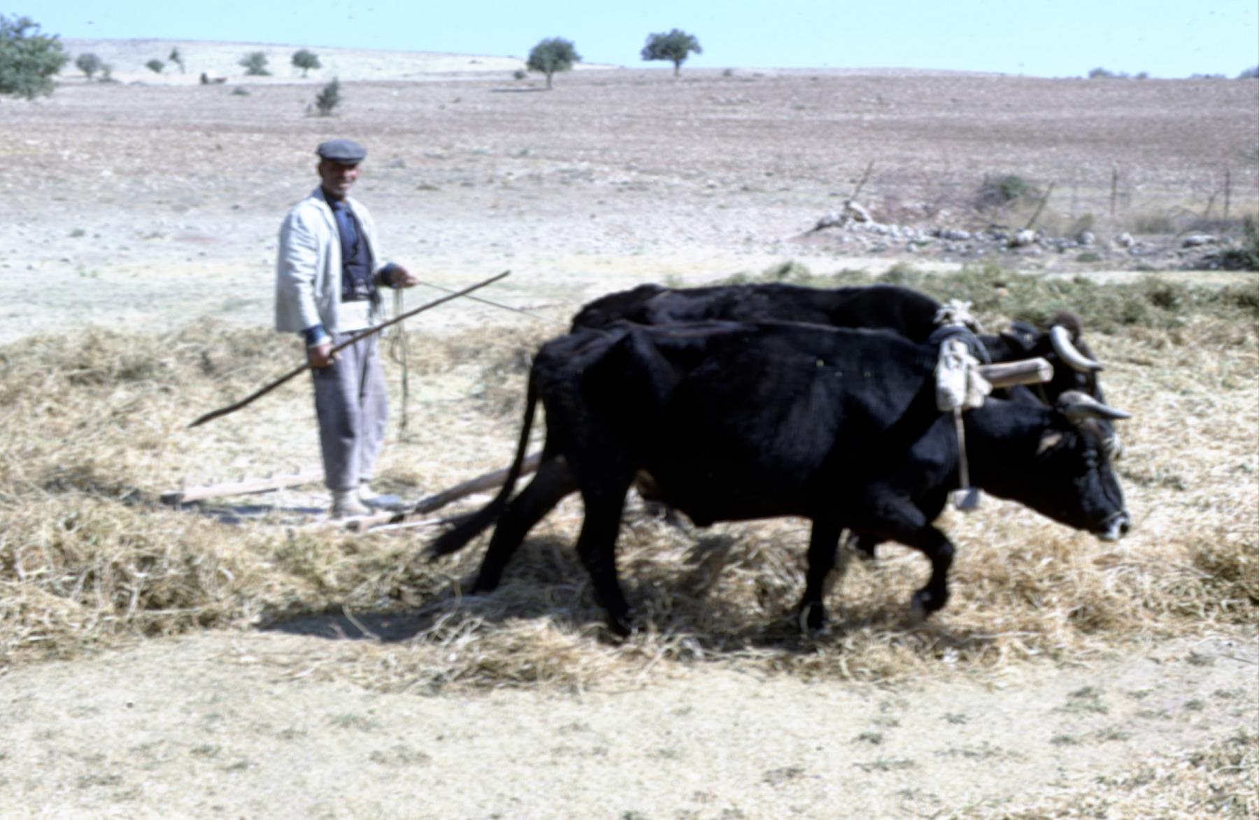 Oxen threading grain. Oxen threading grain. The ancient territory of Galatia, in central Asia Minor, surrounds modern Ankara, Turkey. galatia; territory; ancient; central; asia; minor; ankara; turkey; threshing; floor; harvesting; treading; sledge; winnowing; sifting; agriculture; farming; ox; farmer; animal; territories; ancients; floors; sledges; agricultures; oxen; farmers; animals |