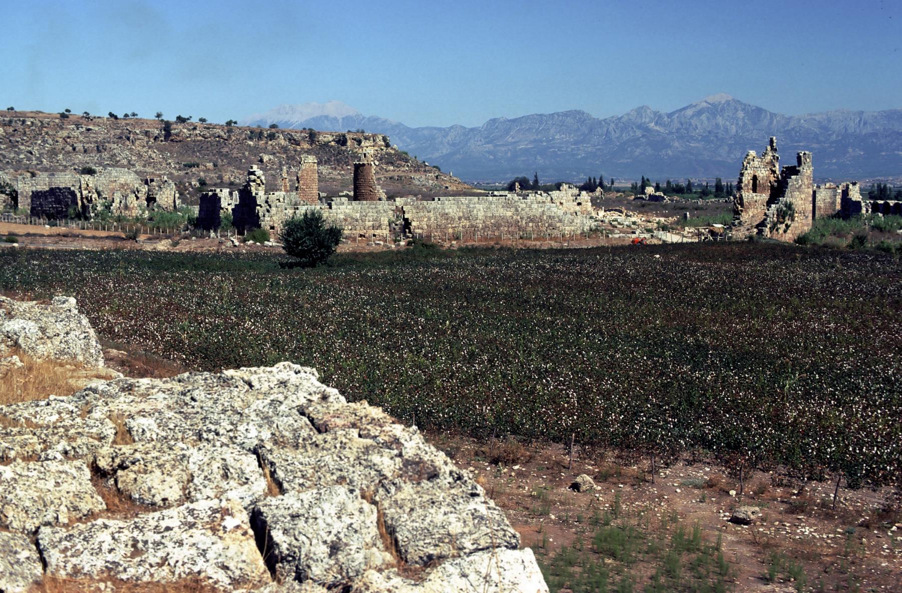 Perga area, Turkey. Perga was in the region of Pamphylia, in Asia Minor, during Paul's time. Paul and Barnabas passed through Perga twice on the First Missionary Journey. John Mark left them here and went home.