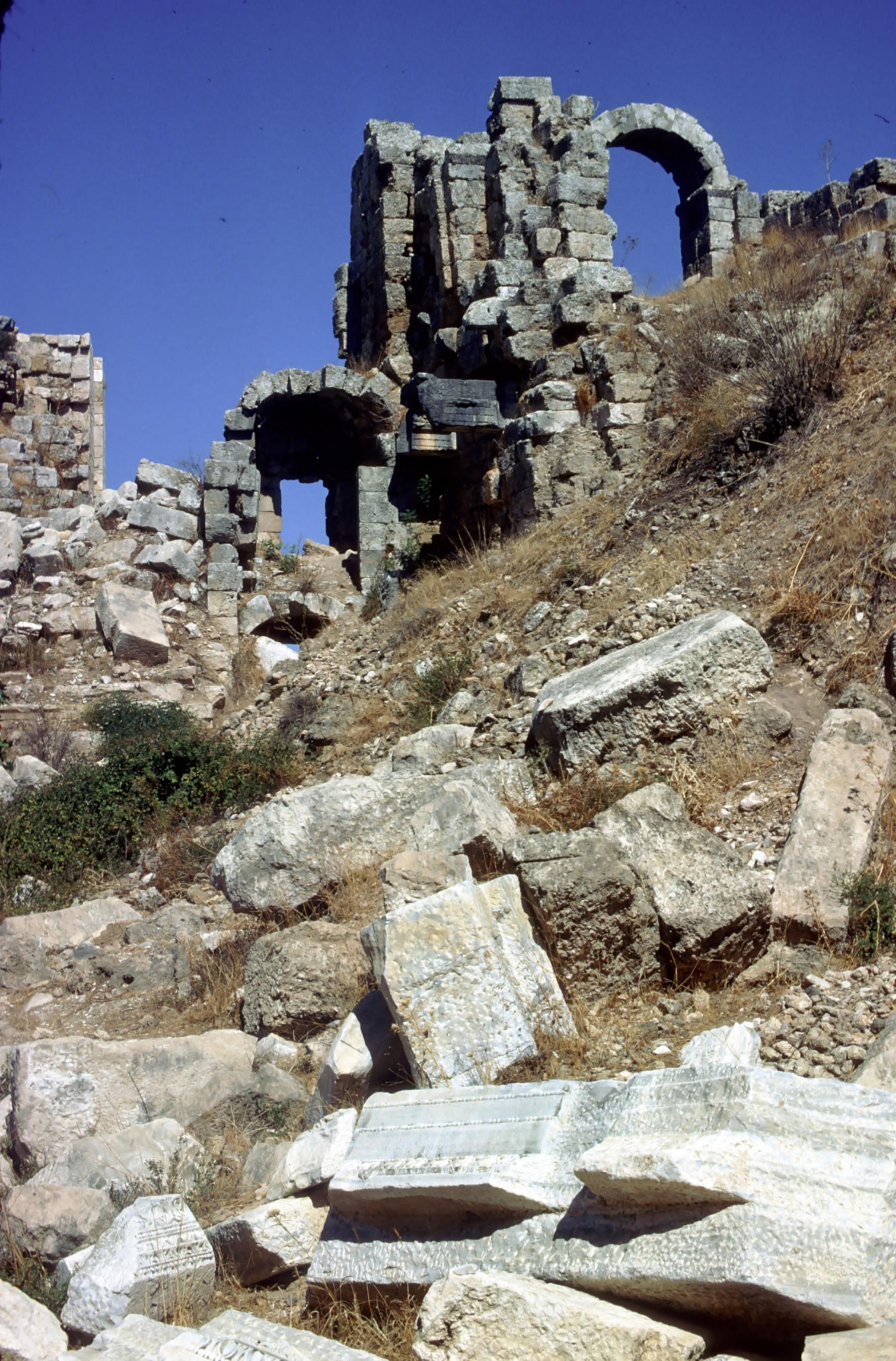 perga; turkey; pamphylia; asia; minor; paul; barnabas; first; missionary; journey; john; mark; left; ruin; archaeology; roman; theater; surrounding; site; missionaries; journeys; marks; ruins; romans; theaters; sites