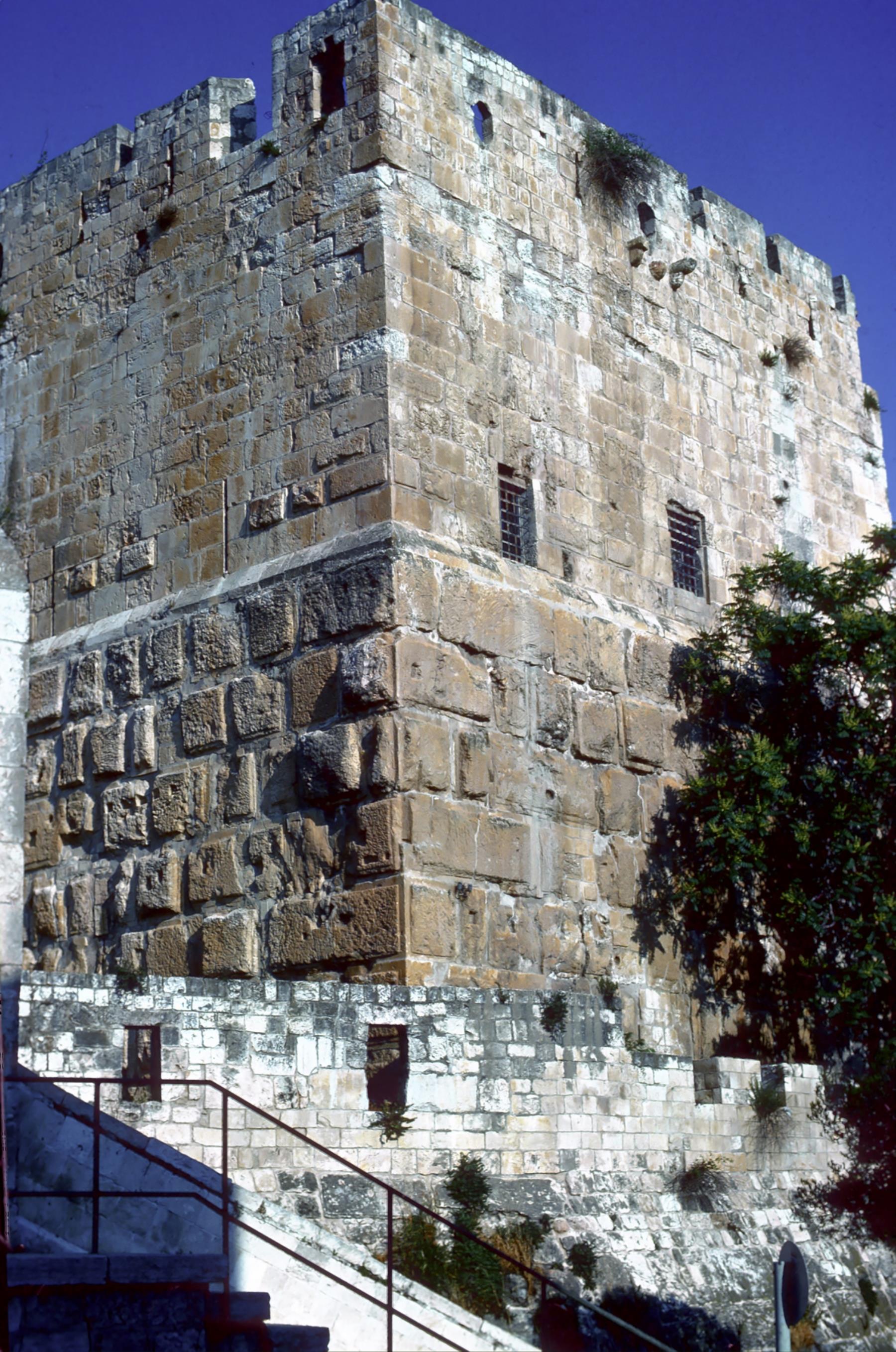 Jerusalem Jerusalem, Citadel, David's tower or Tower of David, an incorrect name. There was a fortress here in the second century BC, but today's structures were built in the 14th century. One view is that this was the place of Jesus' trial and condemnation. jerusalem; citadel; david; tower; fortress; jesus; trial; condemnation; archaeology; ancient; culture; ruin; citadels; towers; trials; condemnations; ancients; cultures; ruins |