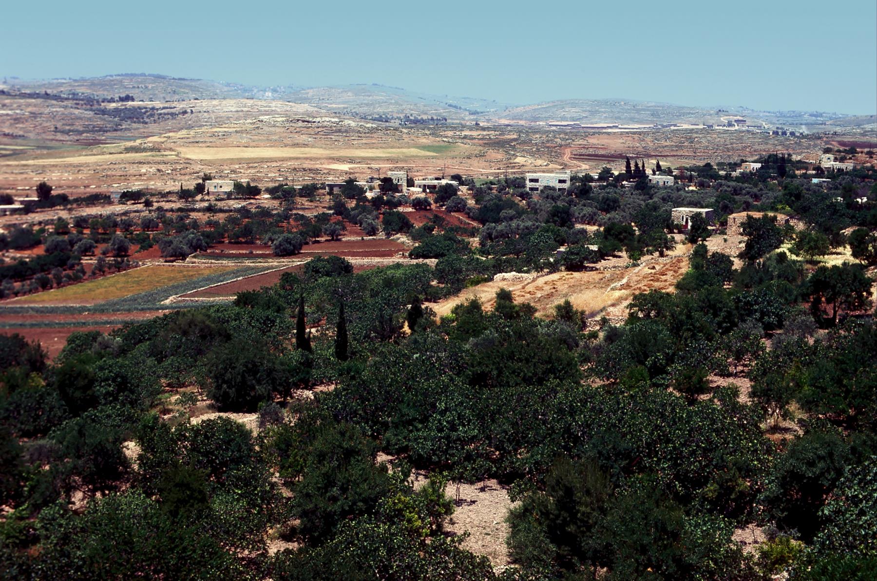 Gibeon Gibeon, view north of El Jib; the Gibeonites tricked Joshua to make a treaty with them. gibeon; north; el; jib; hill; mountain; building; farmland; pasture; field; house; farm; valley; tree; joshua; jibs; hills; mountains; buildings; pastures; fields; houses; farms; valleys; trees |