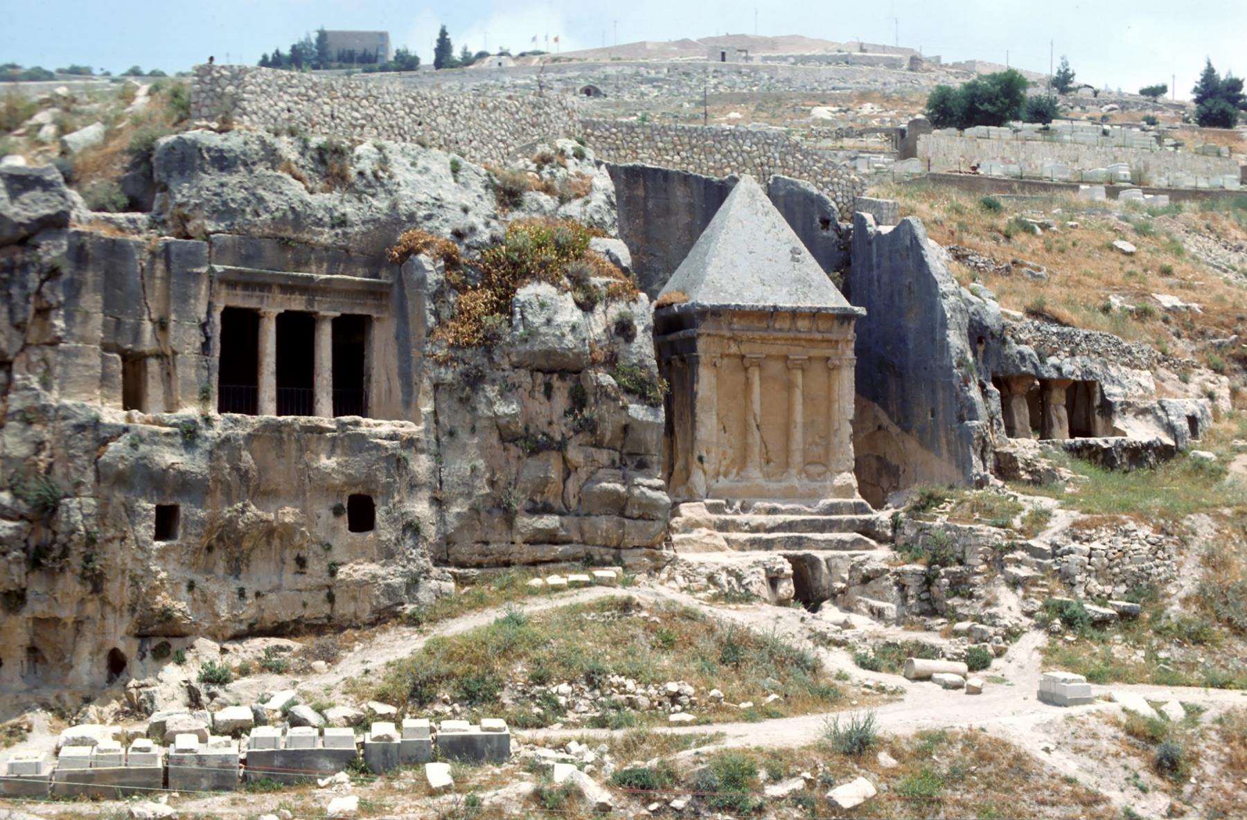The Kidron Valley The Kidron Valley, east of Jerusalem, is often called the Valley of Kings because of royal tombs there. The Bnei Hezir Tomb on the left and the Tomb of Zecharius on the right date from New Testament times. kidron; valley; king; royal; tomb; burial; death; dying; bnei; hezir; zecharius; valleys; kings; tombs; burials; deaths |