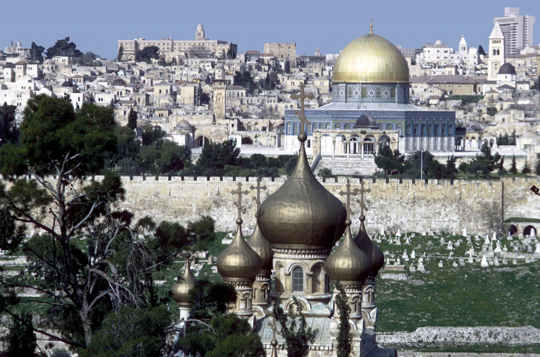 The Temple area of old Jerusalem The Temple area of old Jerusalem, with the Dome of the Rock, is seen in the background. In the foreground, on the Mount of Olives, is the Russian Orthodox St. Mary Magdalene Church. jerusalem; temple; dome; rock; mount; olive; st. ; mary; magdalene; church; russian; orthodox; temples; domes; rocks; mounts; olives; churches; russians |