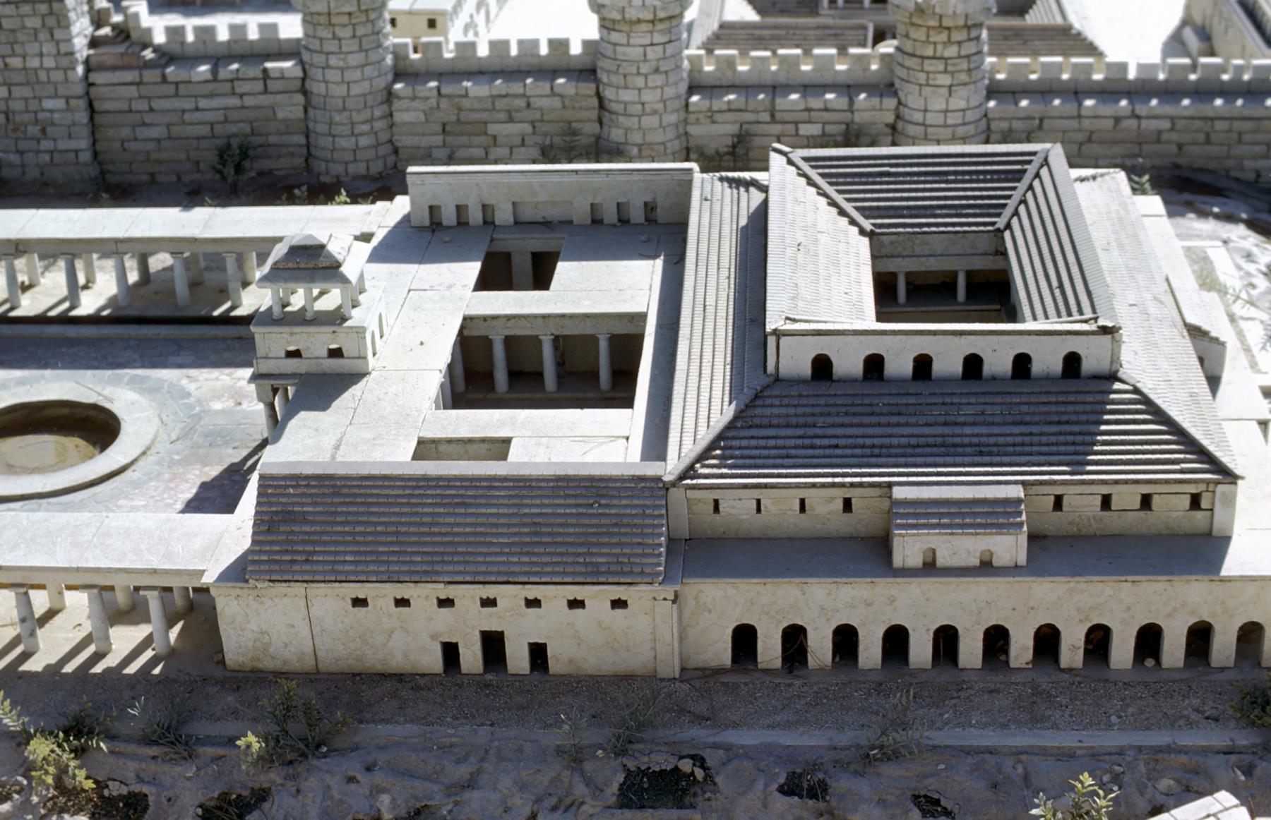 Herod Part of Herod's palace in Jerusalem during the time of Jesus. The entire palace included a fortress and was twice the size of the Roman garrison, the Antonia fortress. herod; palace; jerusalem; fortress; roman; garrison; antonia; archaeology; reconstruction; palaces; romans; garrisons; reconstructions |