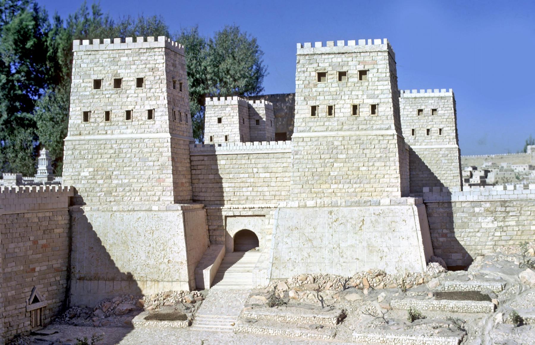 From the four towers of the Antonia fortress From the four towers of the Antonia fortress, the Roman soldiers could watch over the entire Temple area. This model is a reconstruction of the Antonia fortress of Jesus' time. jerusalem; antonia; fortress; roman; soldier; watch; temple; model; reconstruction; archaeology; jesus; time; romans; soldiers; watches; temples; models; reconstructions; times |