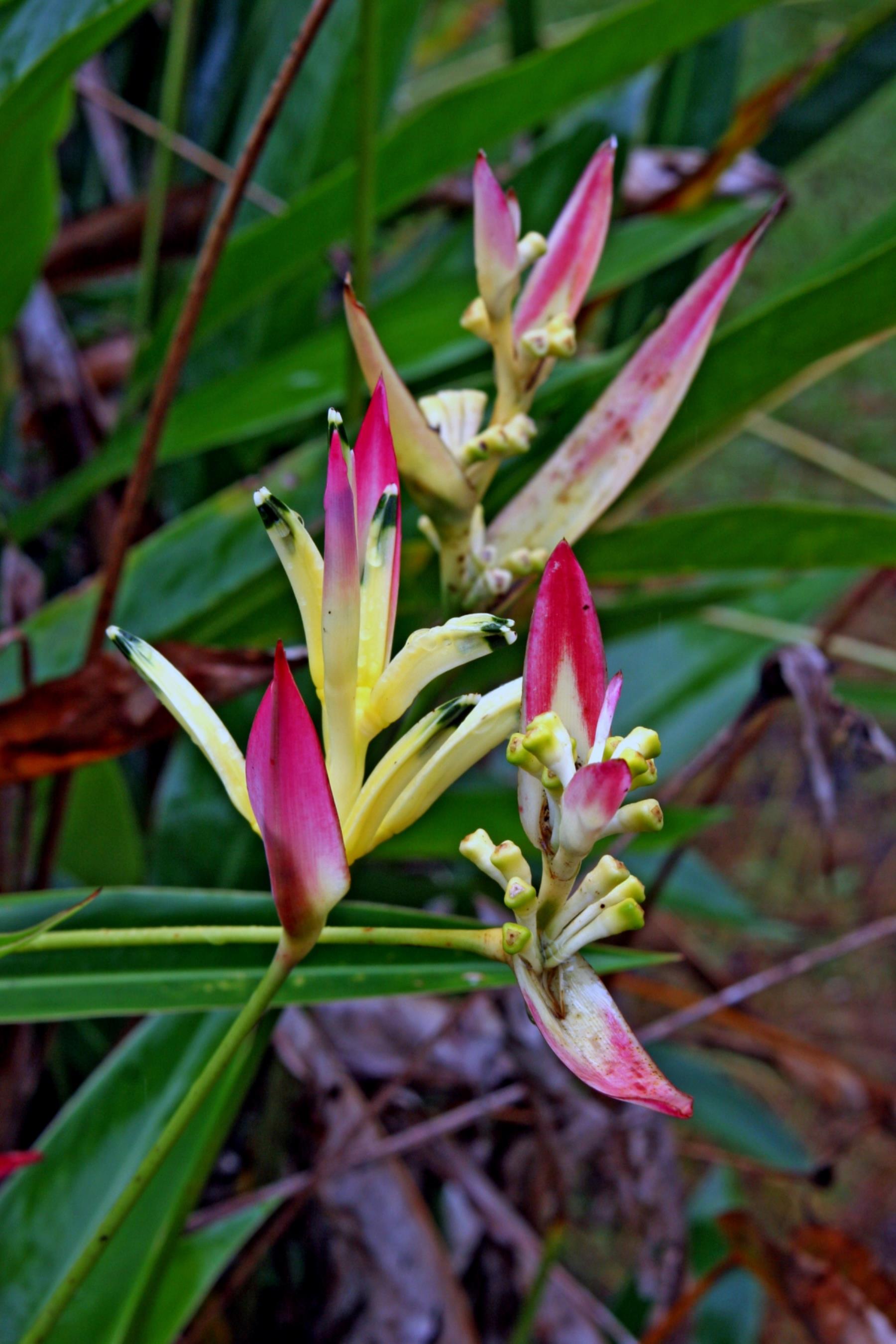 sassy; parrot's beak heliconia; heliconia; red and yellow flowers; red; yellow; nani mau botanical gardens; island of hawaii; hawaii; yellows