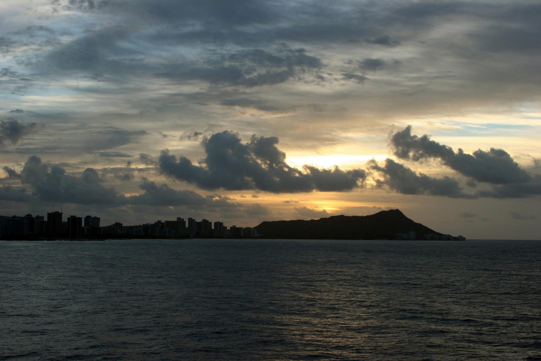 sunrise; sunset; cloud; mountain; diamondhead; volcano; extinct; color; colorful; light; bright; beginning; opening; new; honolulu; hawaii; sunrises; sunsets; clouds; mountains; volcanoes; colors; lights; openings