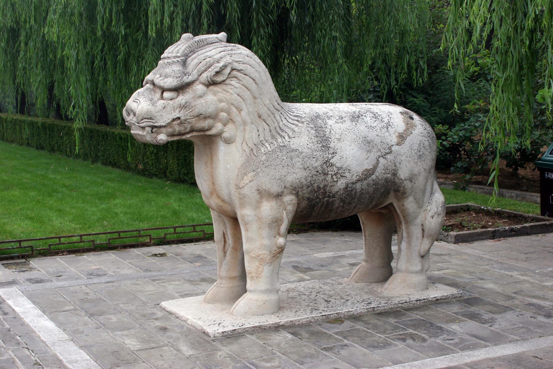 stone xiezhi mythical goat; stone animals on the sacred way; ming tombs; imperial tombs; burial; cemetery; grave; death; dying; dead; dies; china; burials; cemeteries; graves; deaths