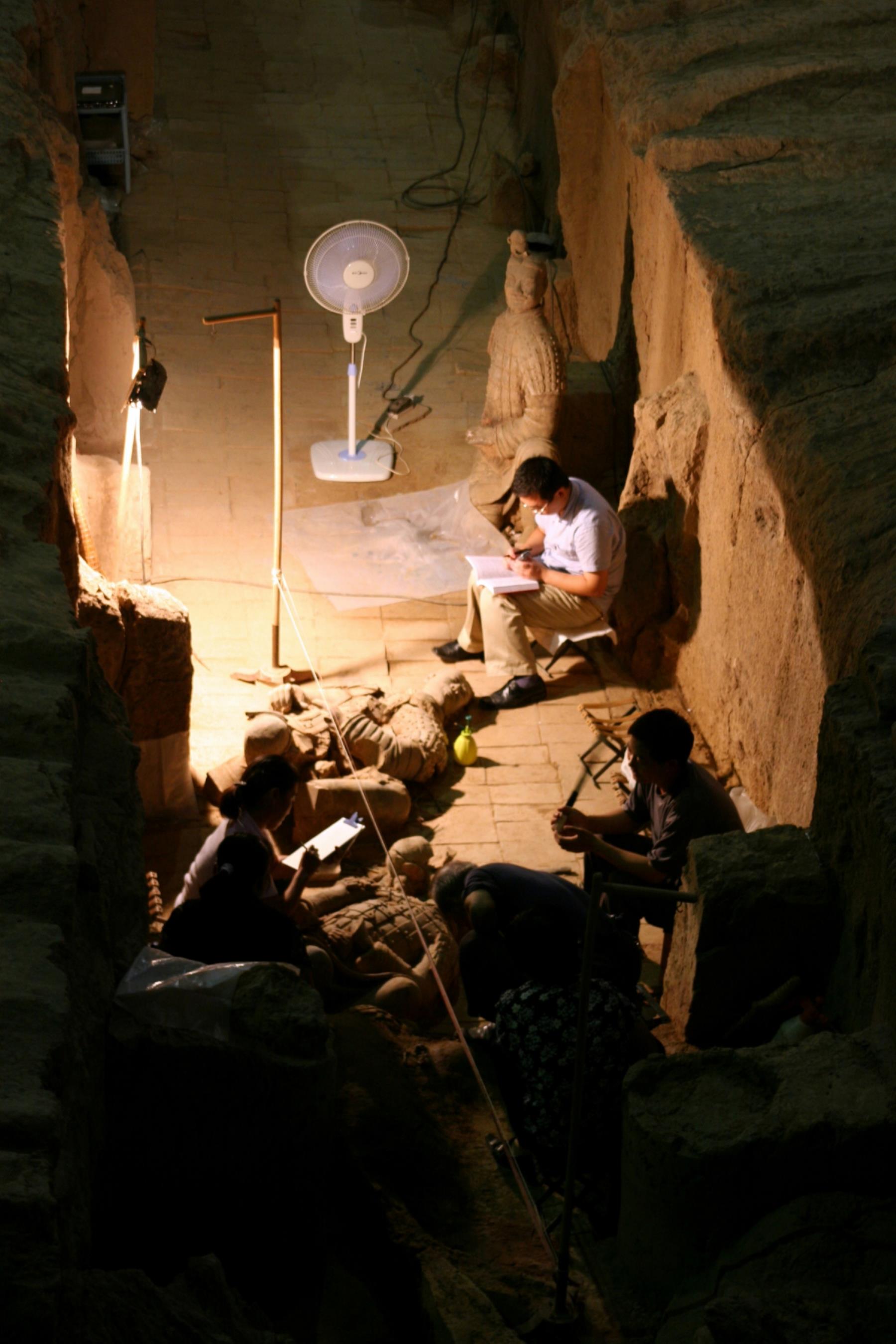 Terracota warriors Archaeologists working on terracota warriors, Xian, China. These warriors guarded the tomb of Qin Shi Huangdi, a despotic ruler of China about 2, 200 years ago. There are 7, 000 figures, each originally covered with colorful paint. The ruler forced 70, 000 people to work 36 years to build these warriors and the tomb. Archaeological excavations began in 1974 when the site was discovered by a farmer digging a well. archaeologists; terracota warriors; guard; 2200 years old; 7000 figures; xian; china; guards |