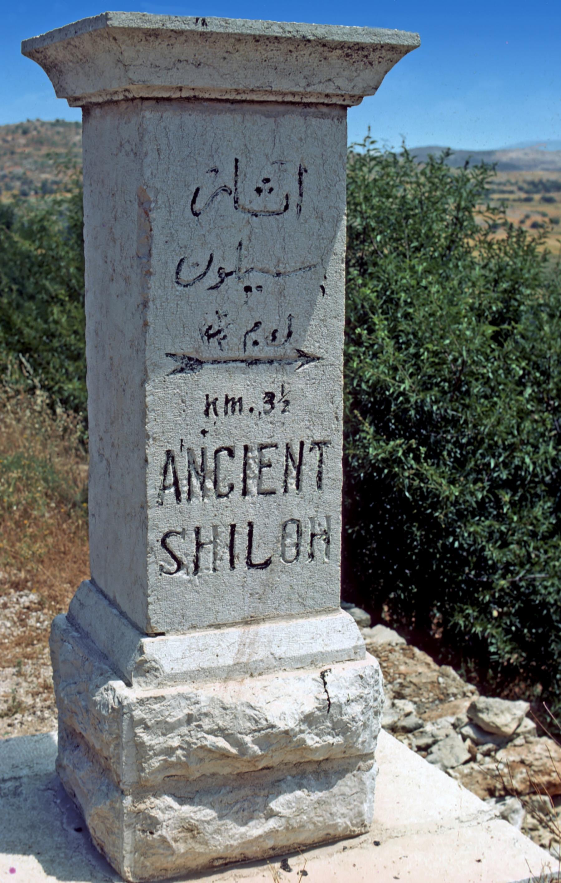 Shiloh was a city in the tribe of Ephraim Shiloh was a city in the tribe of Ephraim, about twelve miles northeast of Bethel, and about twelve miles south of Sychar, the location of Jacob's well. When the Israelites entered the Promised Land under Joshua, they set up the Tabernacle at Shiloh, thus making this their capital until the time of the Judges, about 400 years later. In a battle with the Philistines, the Ark of the Covenant was taken from the Tabernacle here to the battlefield, where the Philistines captured it. By the time of Jeremiah, Shiloh was in ruins (Jeremiah 7:12-14). Road sign near Shiloh. shiloh; tribe; ephraim; israel; tabernacle; capital; ark; covenant; road; sign; tribes; tabernacles; capitals; arks; covenants; roads; signs |