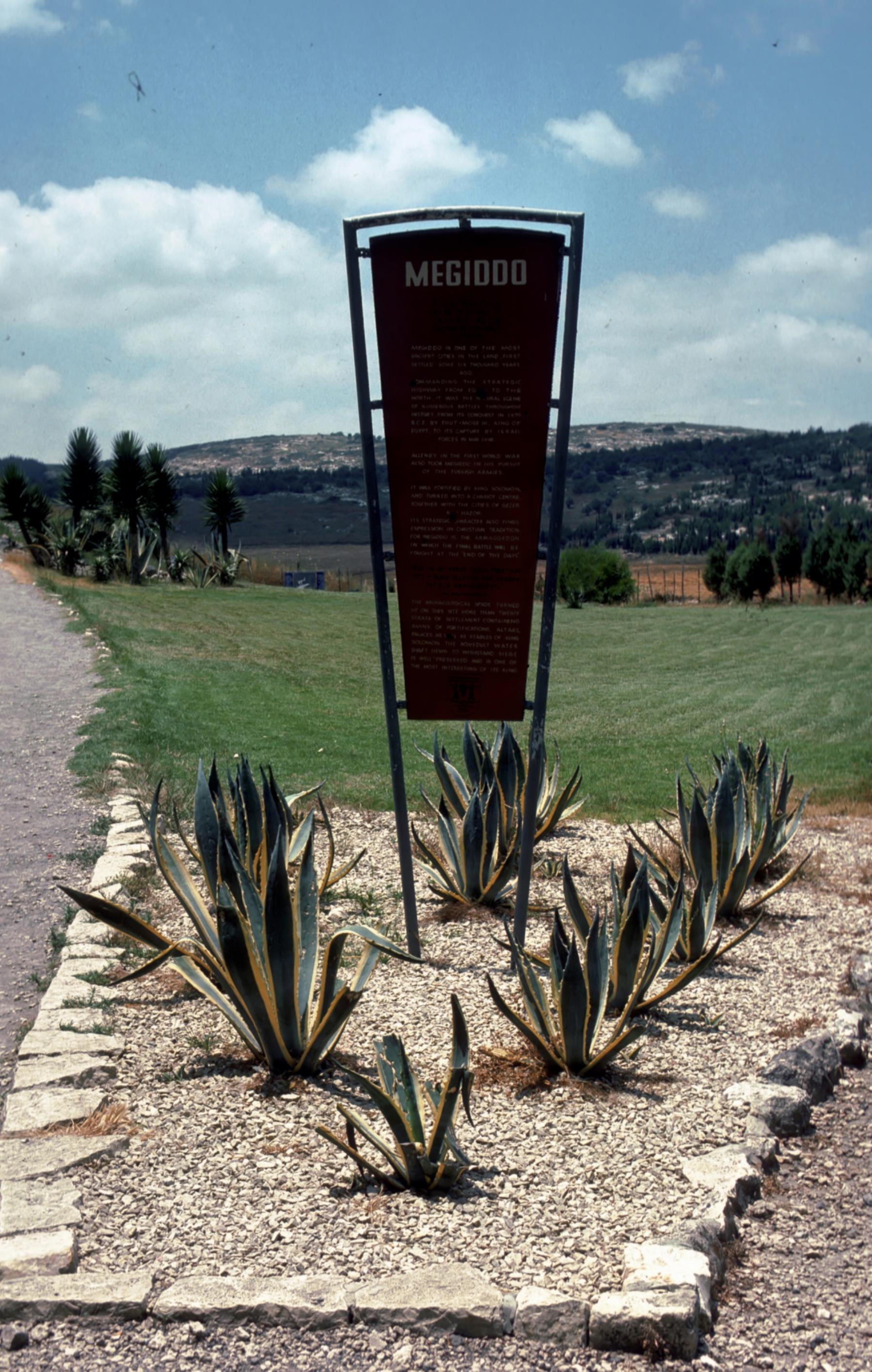 Megiddo Megiddo, Tell El Mutesellim, is in the Plain of Esdraelon, often thought to be the Armageddon of Revelation 16:16. Megiddo guarded the caravan route from Gaza in the south to Damascus in the north, strategic for the movement of goods and armies. Near here, Deborah and Barak won a great battle (Judges 5:19, 20), Gideon defeated the Midianites (Judges 6:33), and Saul died in battle (1 Samuel 31). Today Megiddo is only a tell, ruins of many periods of history in different layers. It was excavated by the Oriental Institute of Chicago, starting in 1925. Sign identifying Megiddo. megiddo; tell; el; mutesellim; plain; esdraelon; armageddon; caravan; route; deborah; barak; battle; gideon; midianites; saul; death; dying; ruin; archaeology; antiquity; artifacts; excavation; oriental; institute; sign; plains; caravans; routes; battles; deaths; ruins; excavations; orientals; institutes; signs |