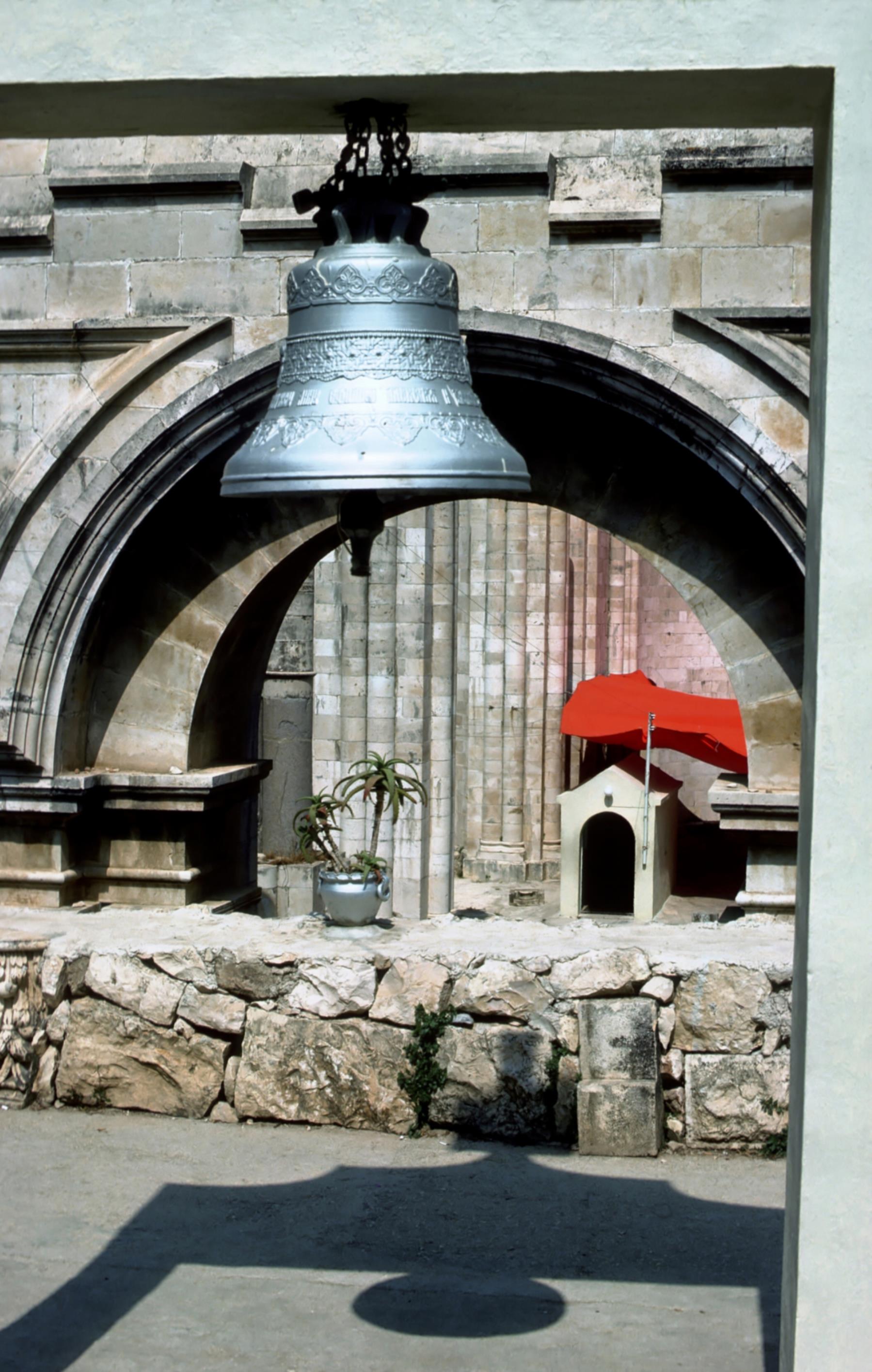 Jesus passed through Samaria on his way to Galilee Jesus passed through Samaria on his way to Galilee; stopping at Jacob's well, near a place called Sychar. There he talked with a Samaritan woman, and through her, led many Samaritans to believe in him as the Messiah. The site of Jacob's well, now memorialized with a building over it, seen in this image, has been traditional for many centuries. Shechem is somewhat west of this well, and Sychar is somewhat east. Bell at Jacob's well. sychar; jacob's; well; samaria; samaritans; jesus; messiah; shechem; bell; wells; bells |