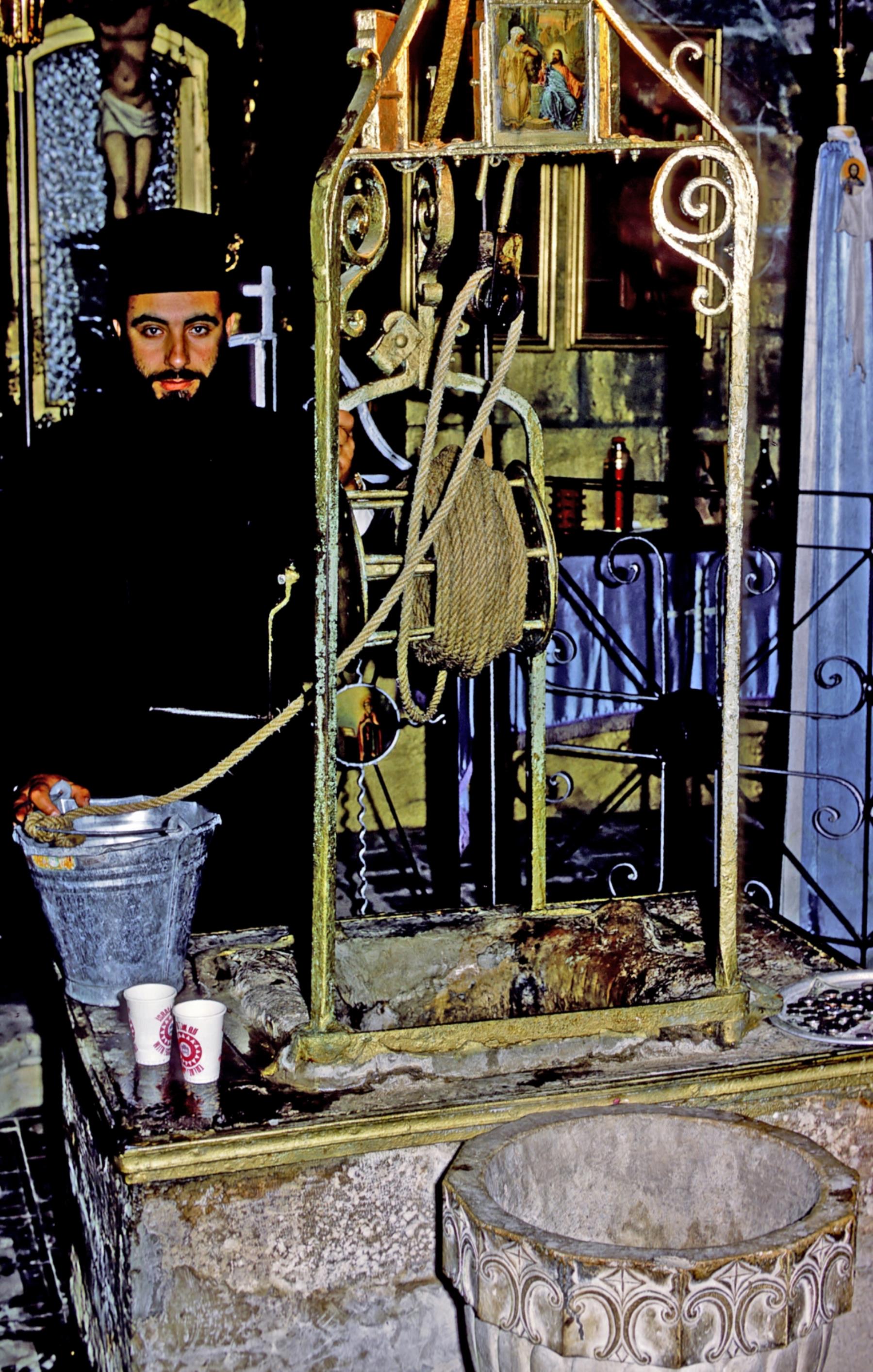 Jesus passed through Samaria on his way to Galilee Jesus passed through Samaria on his way to Galilee; stopping at Jacob's well, near a place called Sychar. There he talked with a Samaritan woman, and through her, led many Samaritans to believe in him as the Messiah. The site of Jacob's well, now memorialized with a building over it, seen in this image, has been traditional for many centuries. Shechem is somewhat west of this well, and Sychar is somewhat east. Jacob's well, inside the building. sychar; jacob's; well; samaria; samaritans; jesus; messiah; shechem; wells |