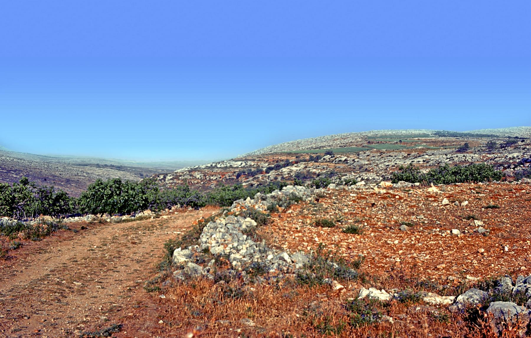 Bethel Twelve miles northwest of Jerusalem, on the border of Samaria and Judea, is a little Arab village named Beitin, sometimes called Beit El. Nearby is the site of ancient Bethel. Here Jacob stopped for the night enroute to Haran and dreamed of angels ascending and descending on a ladder, or stairway, to heaven. There is a British tradition that the stone which served as Jacob's pillow is now under the seat of the Coronation chair in Westminster Abbey. Bethel means house of God. In the distance, in this picture, is the modern Arab village Beitin, near Bible-time Bethel. Looking north from ruins of Bethel. bethel; israel; beitin; beit; el; jacob; ladder; stairway; angel; heaven; north; ladders; stairways; angels; heavens |