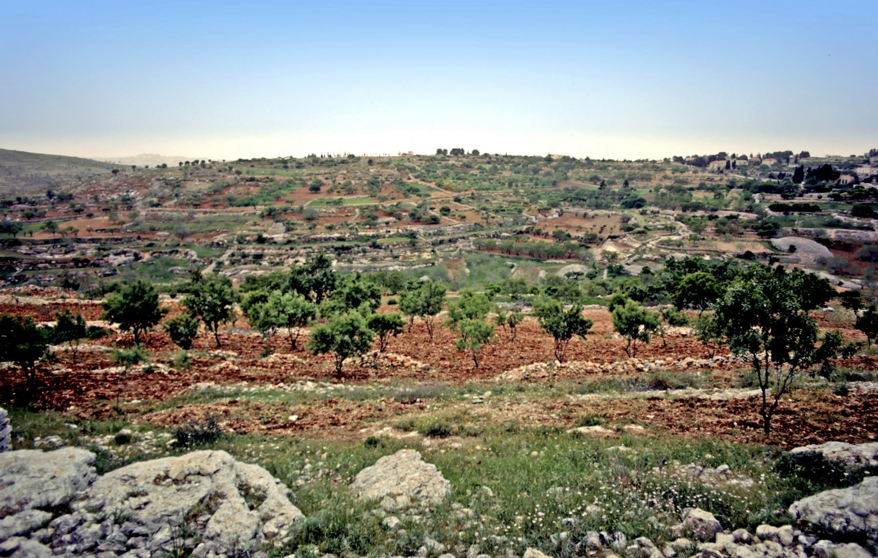 Bethel Twelve miles northwest of Jerusalem, on the border of Samaria and Judea, is a little Arab village named Beitin, sometimes called Beit El. Nearby is the site of ancient Bethel. Here Jacob stopped for the night enroute to Haran and dreamed of angels ascending and descending on a ladder, or stairway, to heaven. There is a British tradition that the stone which served as Jacob's pillow is now under the seat of the Coronation chair in Westminster Abbey. Bethel means house of God. In the distance, in this picture, is the modern Arab village Beitin, near Bible-time Bethel. Looking south from Bethel. bethel; israel; beitin; beit; el; jacob; ladder; stairway; angel; heaven; south; ladders; stairways; angels; heavens |