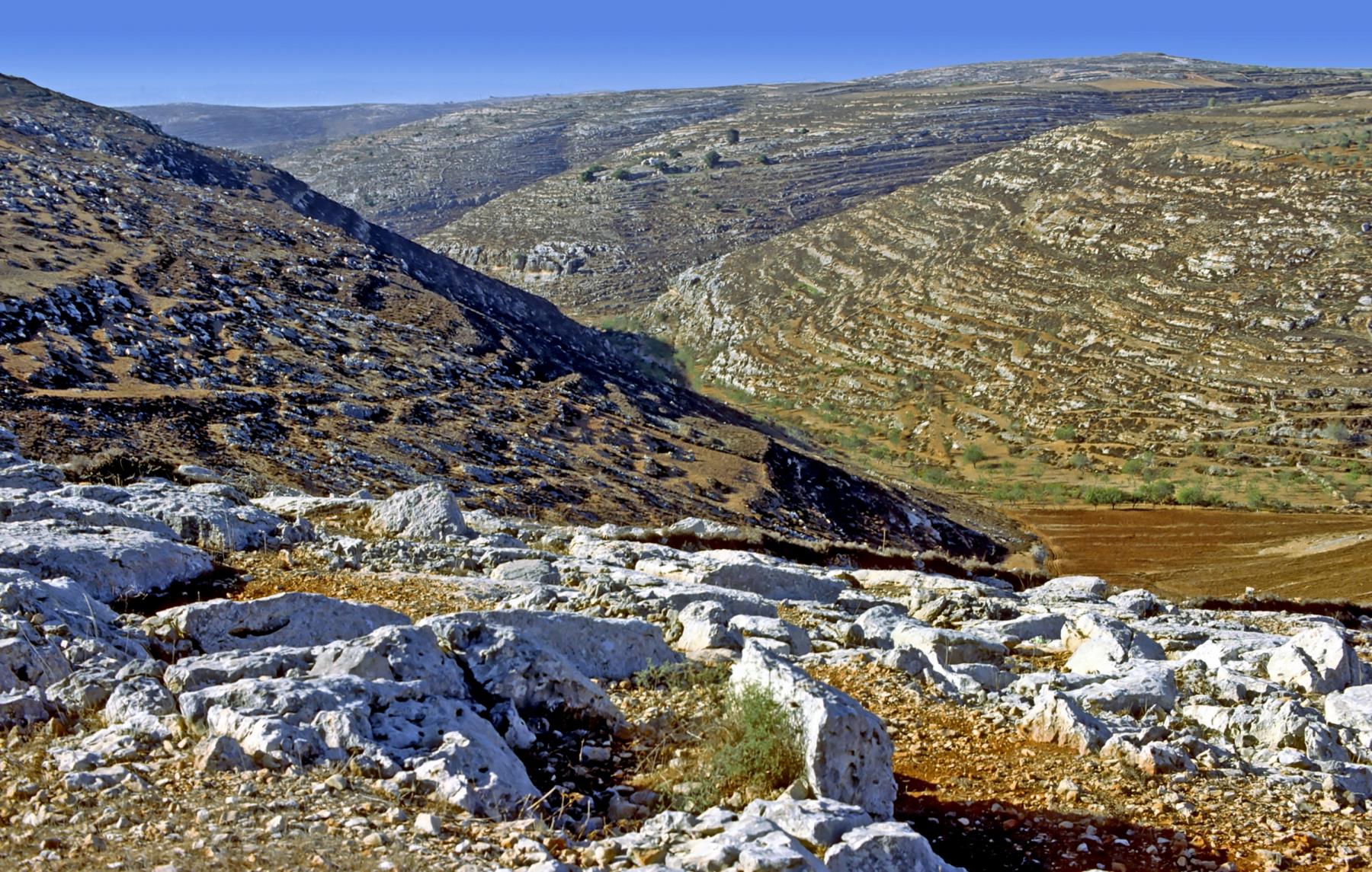 Bethel Twelve miles northwest of Jerusalem, on the border of Samaria and Judea, is a little Arab village named Beitin, sometimes called Beit El. Nearby is the site of ancient Bethel. Here Jacob stopped for the night enroute to Haran and dreamed of angels ascending and descending on a ladder, or stairway, to heaven. There is a British tradition that the stone which served as Jacob's pillow is now under the seat of the Coronation chair in Westminster Abbey. Bethel means house of God. In the distance, in this picture, is the modern Arab village Beitin, near Bible-time Bethel. Looking south from a point about 2 miles south of Bethel. bethel; israel; beitin; beit; el; jacob; ladder; stairway; angel; heaven; south; ladders; stairways; angels; heavens |