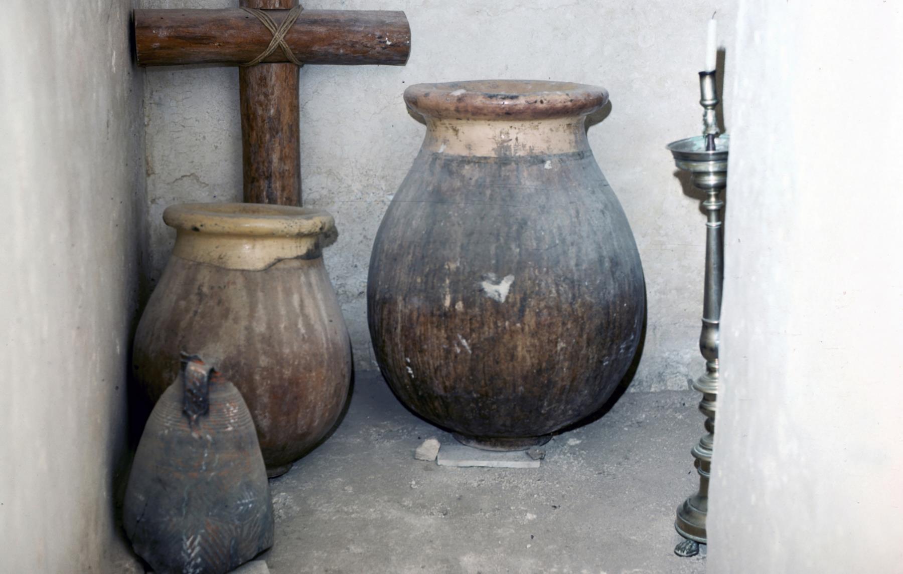 Cana The little town of Cana was the scene of Jesus' first miracle--turning water into wine (John 2:1-11). He visited Cana again (John 4:46). Cana was also the home of Nathanael (John 21:2). The traditional site of Bible-time Cana is the little village of Kefr Kenna, about four miles northeast of Nazareth. Images here are from this place. Some believe the village of Qana, sometimes called Khirbet Qana, in present-day Lebanon, is the site of Bible-time Cana. Waterpots in the Franciscan church at Kefr Kenna remind us of the waterpots Jesus used in his miracle. cana; galilee; waterpots; israel; jesus'; miracle; water; wine; kefr; kenna; qana; khirbet; lebanon; miracles; waters; wines |