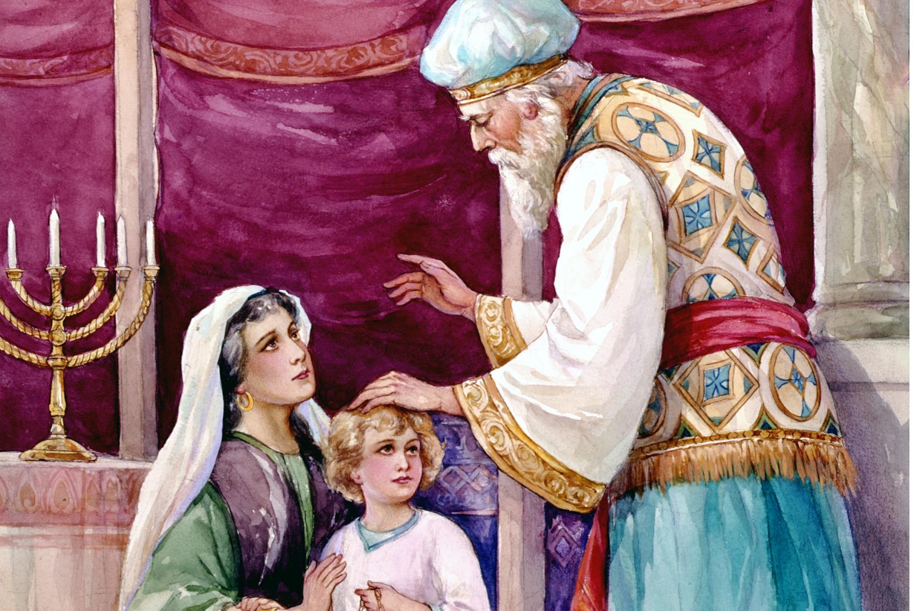 Hannah gives the boy Samuel to the high priest Eli, so that Samuel can serve in the tabernacle -- 1 Samuel 1:21--2:11. This shows Hannah's dedication to God, her great sense of giving, and Samuel's service to God.