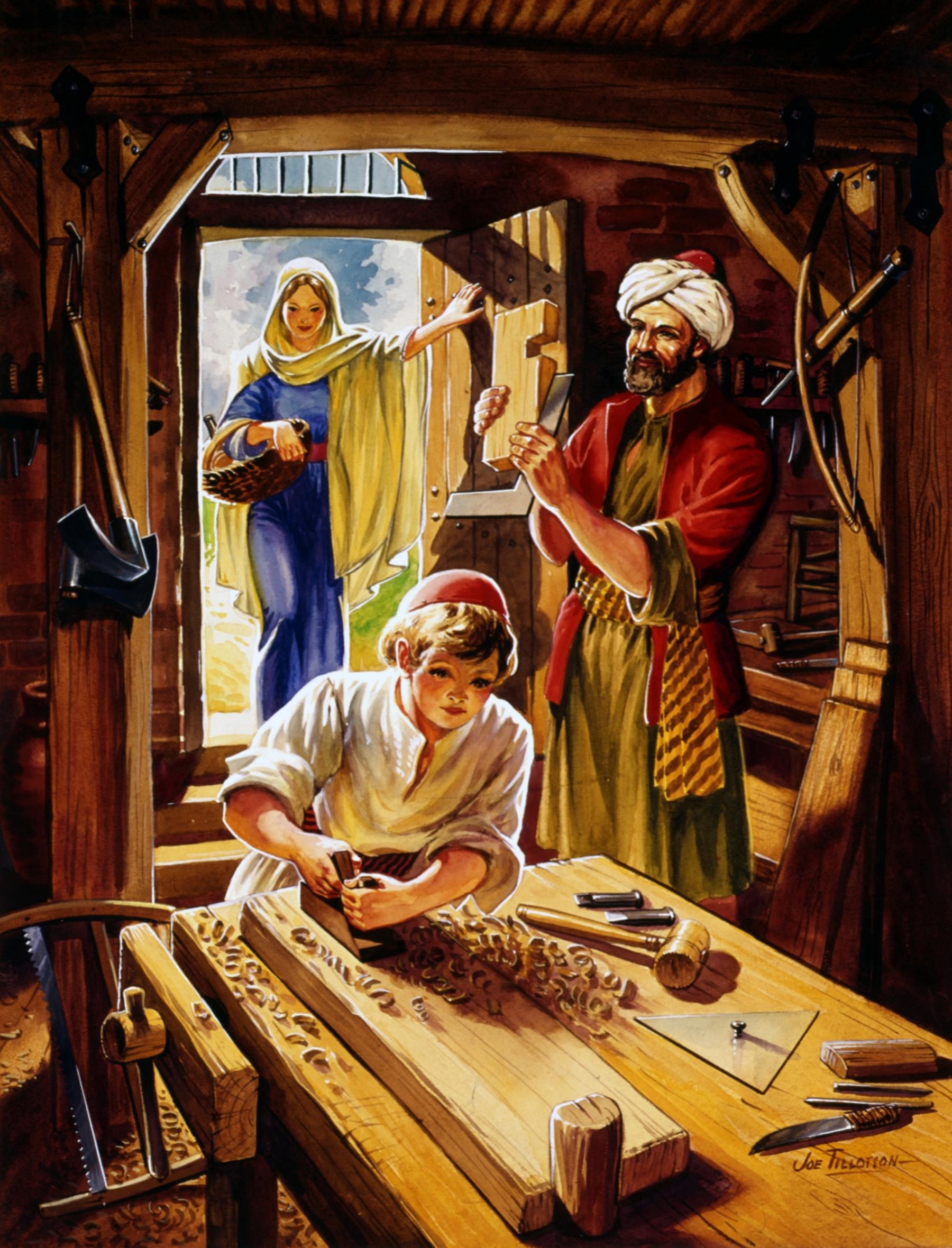 The boy Jesus works in Joseph's carpentry shop