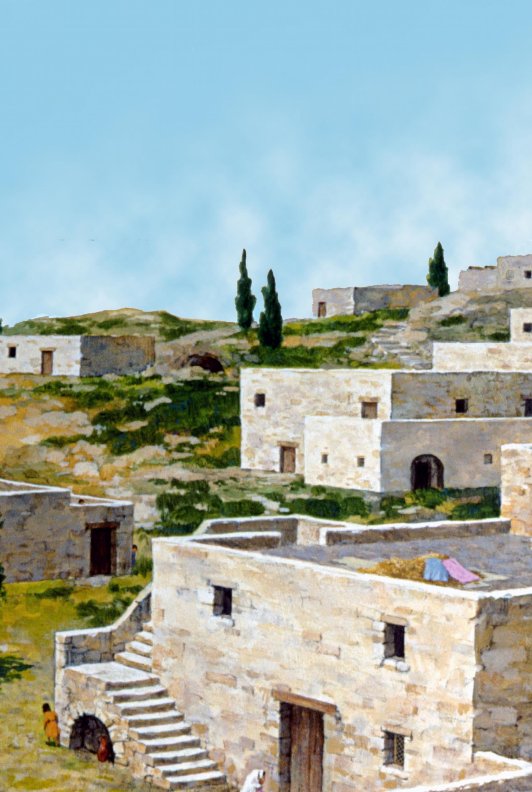 Bible time house Bible-time houses in Israel were usually made of stone or clay bricks. Roofs were wooden rafters covered by reeds of branches. Most houses had open windows since glass was not yet used for windows as today. Often significant activity was carried out on the flat, open rooftops, or in open courtyards. Water was drawn from an open well. house; rooftops; courtyard; window; well; houses; windows; wells |