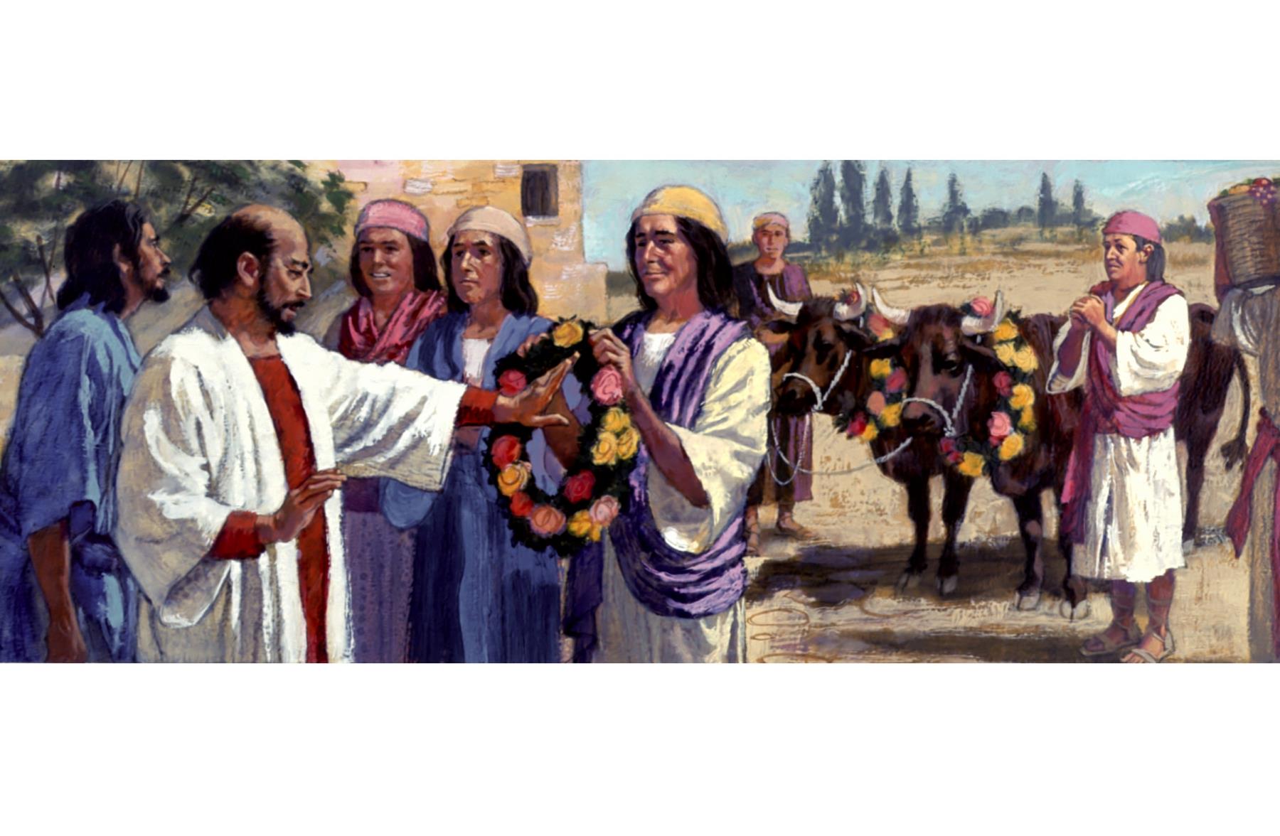 Paul The crowds at Lystra try to worship Paul and Barnabas as gods--Barnabas the Greek god Jupiter or Zeus; Paul the Greek god Hermes or Mercury, but Paul and Barnabas refused their worship (Acts 14:8-20). paul; barnabas; first missionary journey; lystra; acts 14:8-20; jupiter; zeus; hermes; mercury; greek gods; worship |