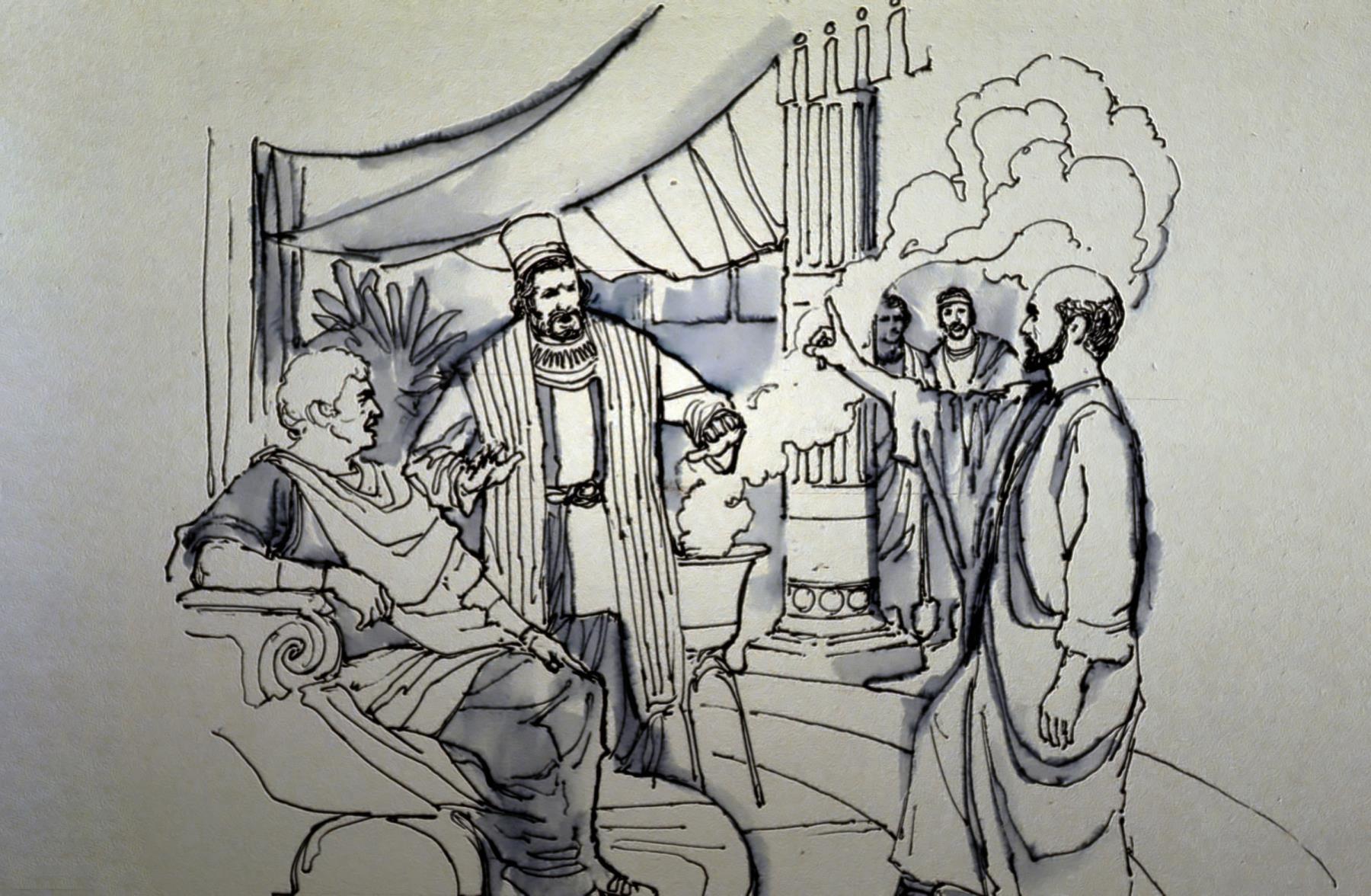 On his First Missionary Journey On his First Missionary Journey, Paul shared the Gospel with Sergius Paulus, governor of Cyprus, but an evil sorcerer named Elymas, or Bar-jesus, tried to stop the governor from believing. For that, he was punished and struck blind (Acts 13:1-12). paul; sergius paulus; elymas; bar-jesus; governor; acts 13:1-12; first missionary journey; sorcerer; governor; blinded; blind; miracle; punishment; punish; punishes; punished; punishing; punisher; punishers; punisher's; punishers'; governors; sorcerers; miracles; punishments |