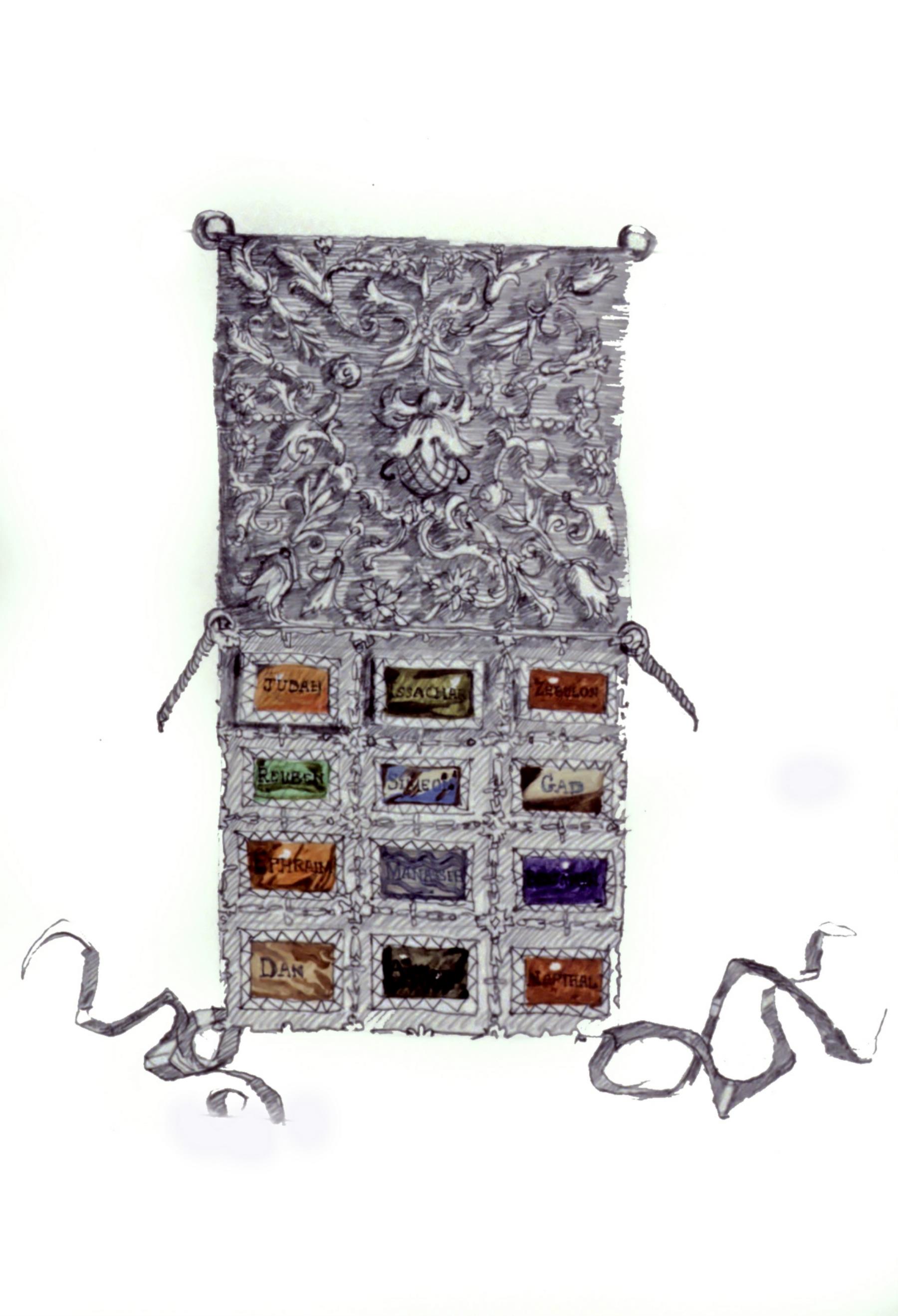 The linen breastpiece The linen breastpiece, or breastplate, worn by each of Israel's high priests. Each of the twelve precious stones represented one of the twelve tribes of Israel. linen; breastpiece; breastplate; high priest; precious stones; twelve tribes of israel; linens; breastplates |