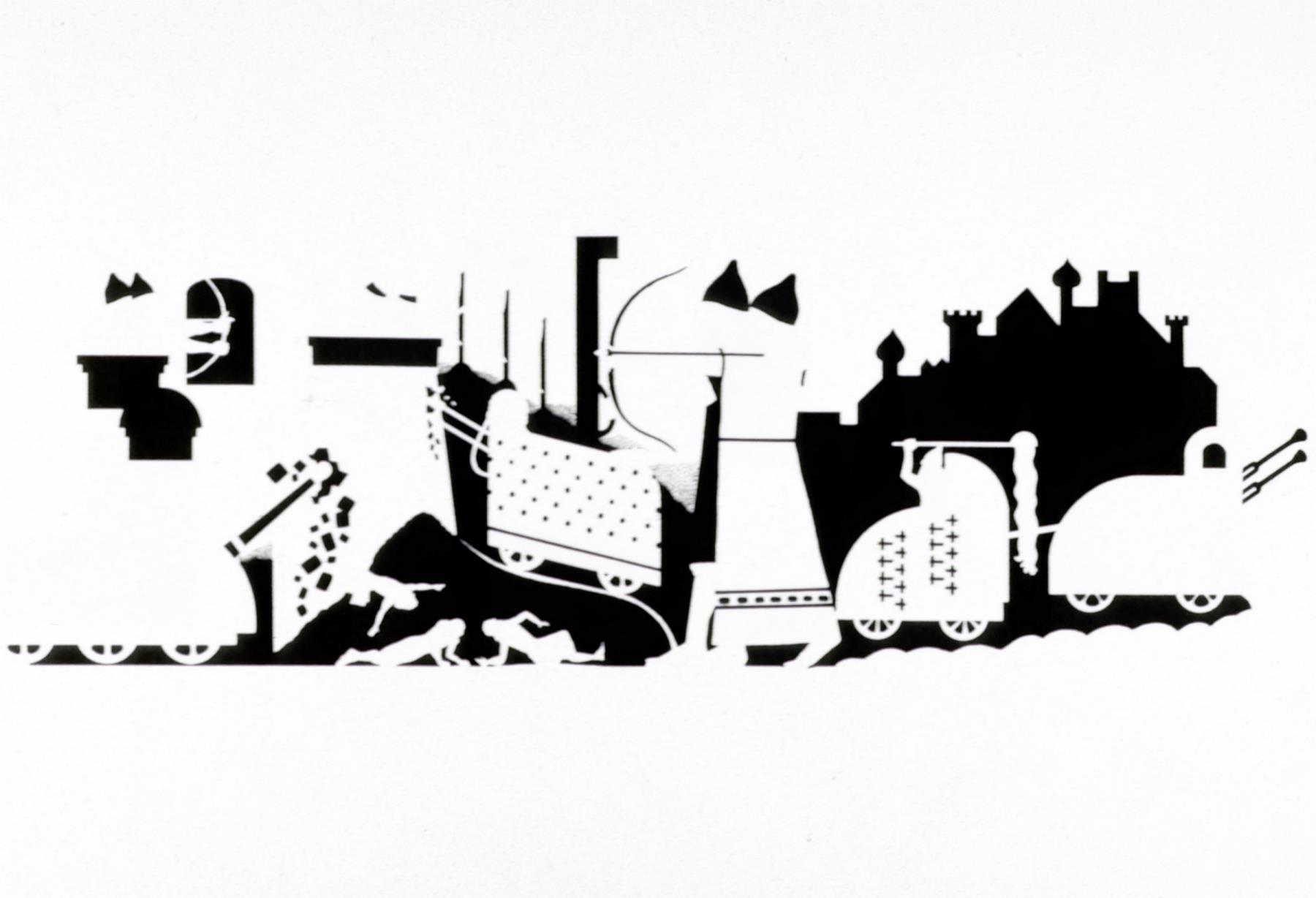 In the eighth century B. C., the Assyrians were leaders in the art of warfare. The wheeled vehicles here were battering rams, used to break down a gate or wall.