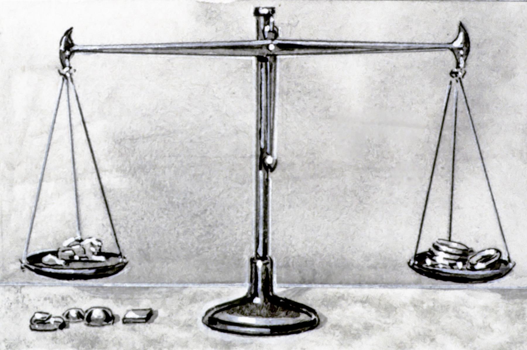A drawing of balances A drawing of balances, or scales, of Bible times. A standard weight was placed on one side, and the object or objects to be weighed were placed on the other side. scale; balance; weigh; weighed; weighing; weighs; weight; scales; balances; weights |